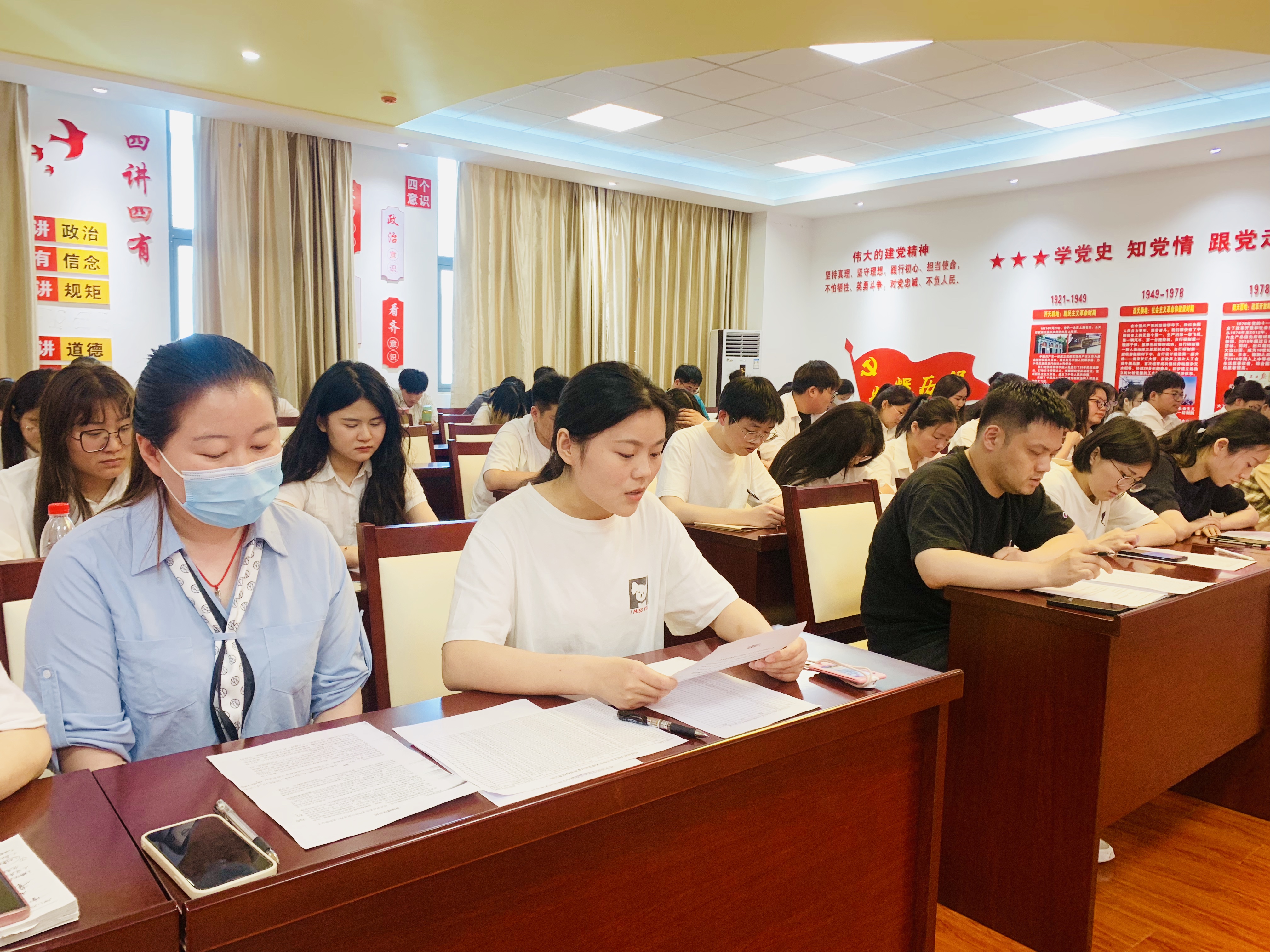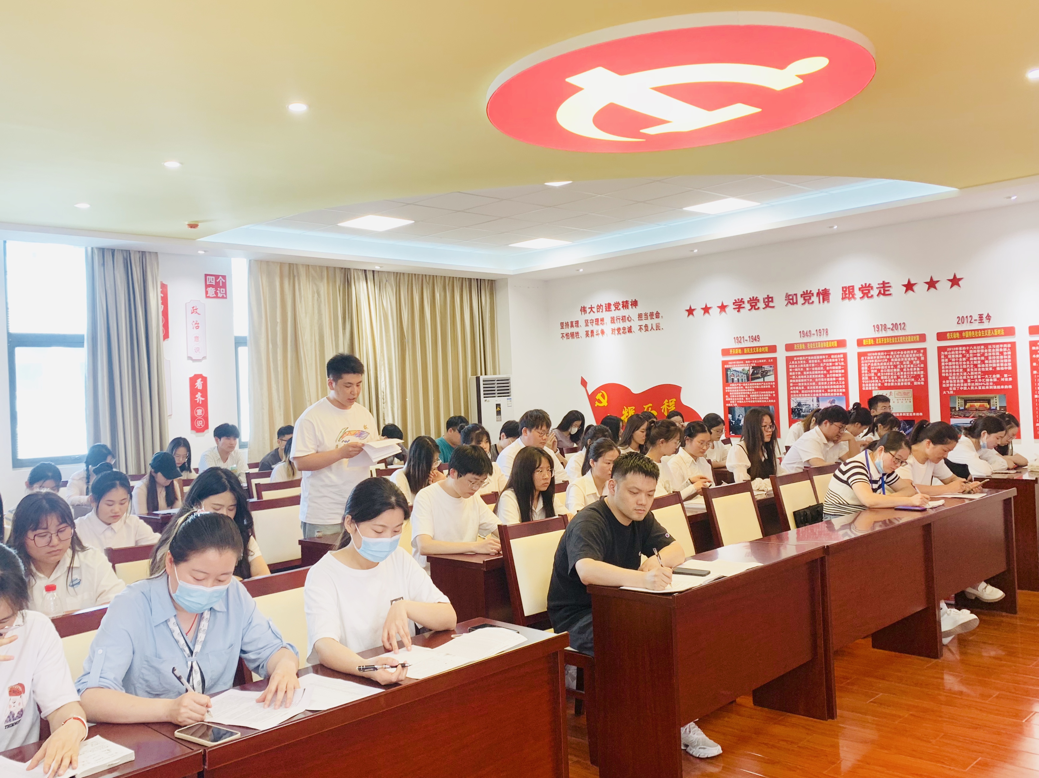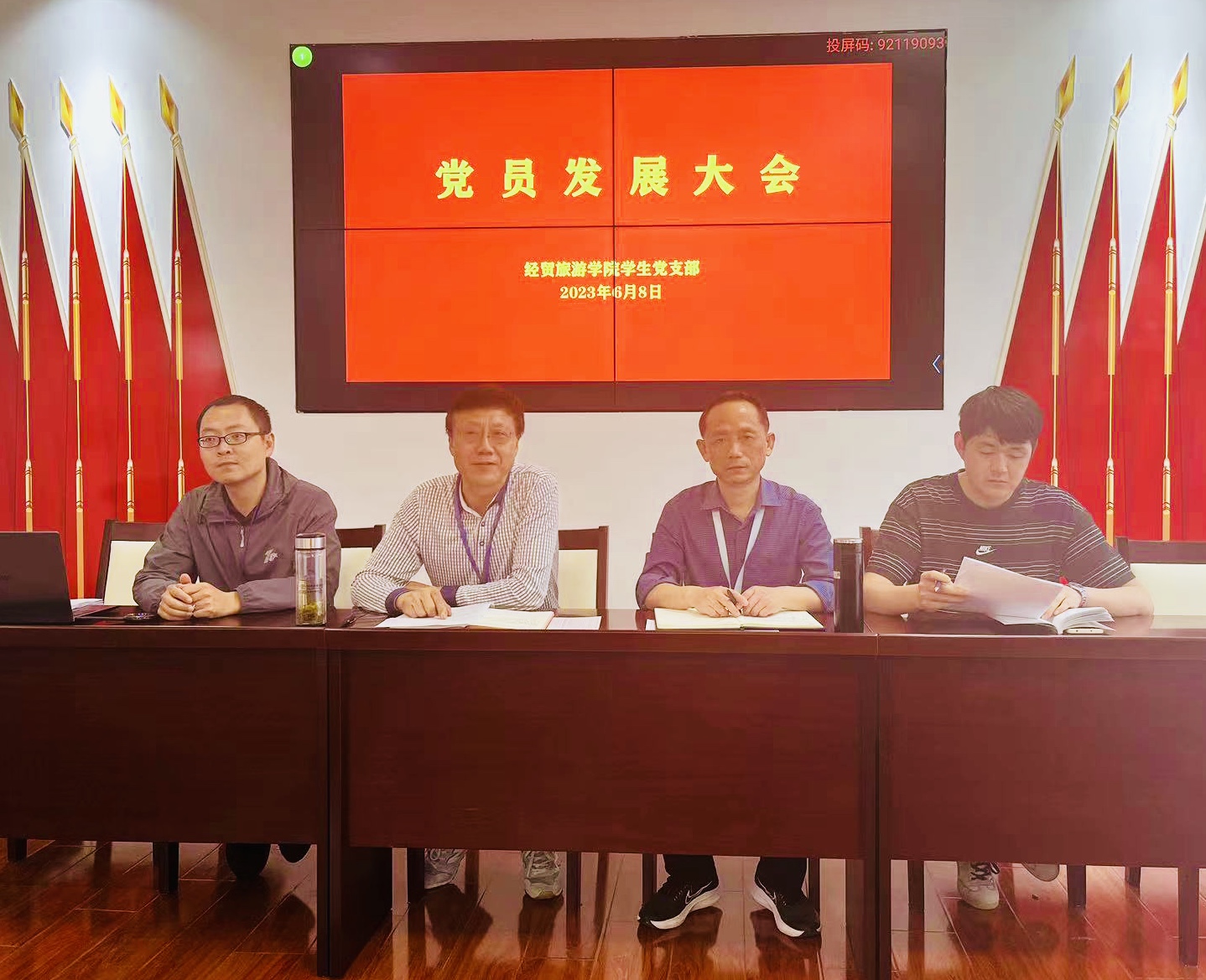 6月8日下午,谈球吧员工党支部在经贸楼党性体验馆召开预备党员发展大会,支部全体党员、发展对象和入党介绍人出席会议,会议由员工党支部书记王明明主持。