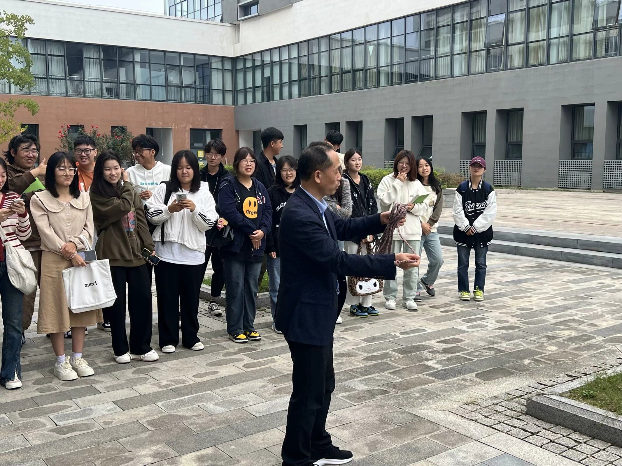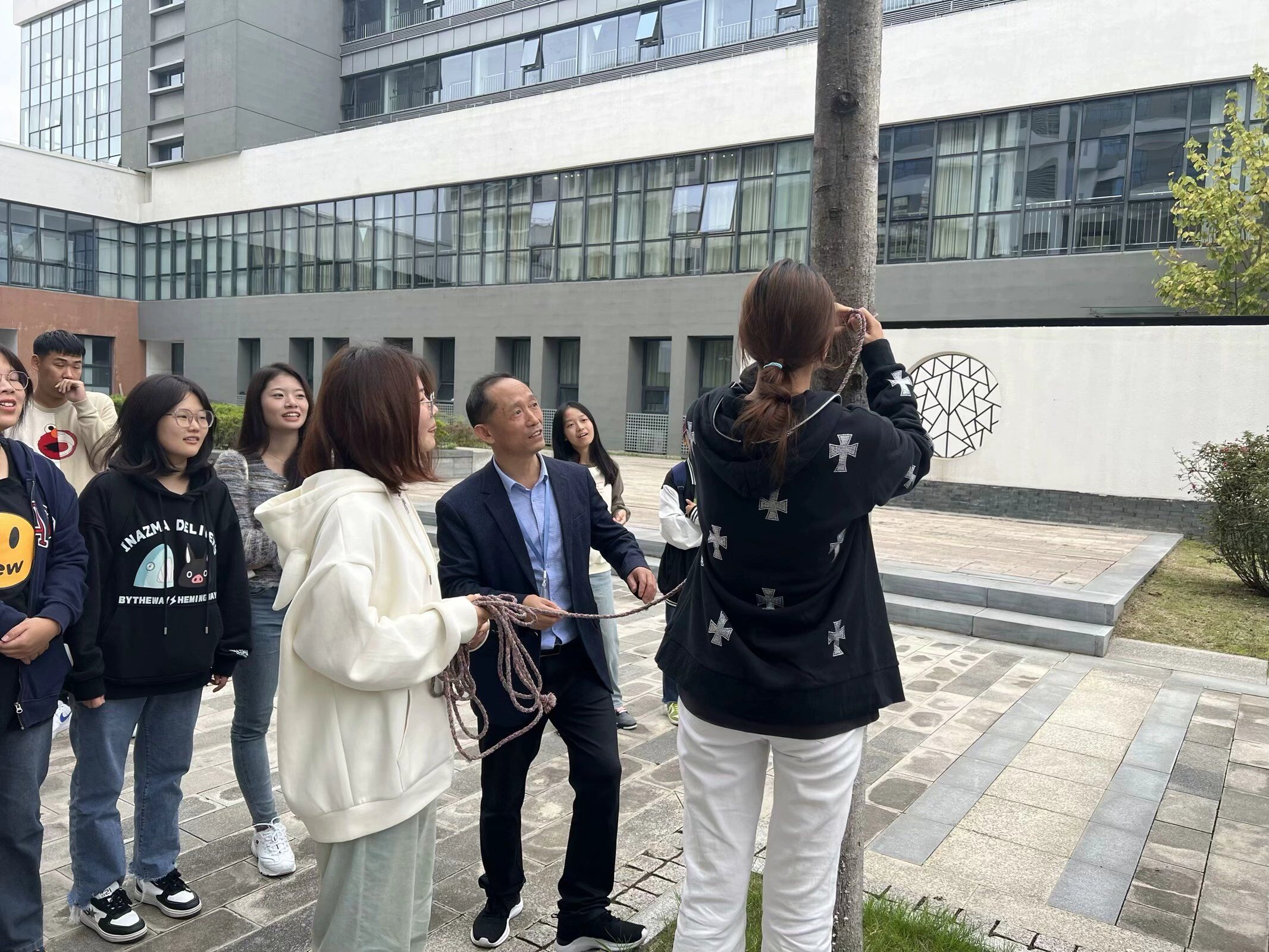 劳动教育是培养德智体美劳全面发展人才的关键环节,是全面育人的重要内容。谈球吧持续深化“三全育人”综合改革,落实“五育并举”,充分发挥劳动育人功能,教育引导员工崇尚劳动、尊重劳动、热爱劳动。为此,公司对23级员工的《劳动教育》课程教学进行了有益的探索。比如,23会计3、4、5班《劳动教育》课的指导老师刘圣春,因地制宜,让员工走出教室,设计了“拴晒衣绳”及“挑担子”两个教学板块。