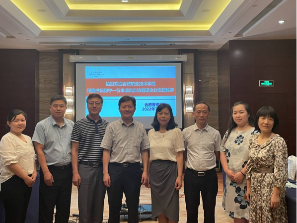 7月21日下午,公司党委委员、纪委书记陶宁带领公司党总支书记梅亚松,经理赵红和副经理刘圣春到合肥香格里拉大酒店看望在该酒店进行暑期企业实践的杨世河、刘娴、张珮玮、杨洋四位教师。合肥香格里拉大酒店人力资源总监刘鑫、前厅部经理方慧、人力资源部主管钱文静等热情接待了陶宁书记一行。