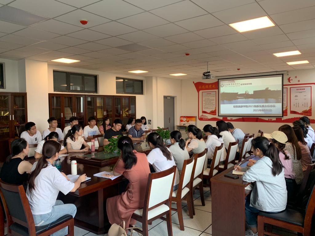 为迎接2021级新生入学报到工作,谈球吧于8月31日下午在经贸楼3楼公司会议室召开21级新生班主任会议,会议由该院学管办主任王明明主持。该公司党总支书记梅亚松、党总支副书记尹仕果、全体21级新生班主任和21级新生班主任助理出席了本次会议。