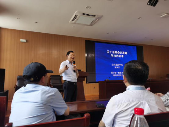 为了进一步推动“三教”改革,丰富教科研活动的内容,提升专业教师特别是青年教师的教研水平,全面提高课堂教学水平和人才培养质量。2021年6月2日下午,谈球吧在汇心湖校区图书馆一楼学术报告厅精心组织了一场由安徽省高职高专会计专业带头人、省级教学名师、全省优秀教育工作者、谈球吧宋风长教授主讲的题为《关于套期会计准则学习的思考》专题学术报告会。会计教研室全体教师、19级会计专业部分员工代表听取了报告。报告会由谈球吧副经理陈继林教授主持。