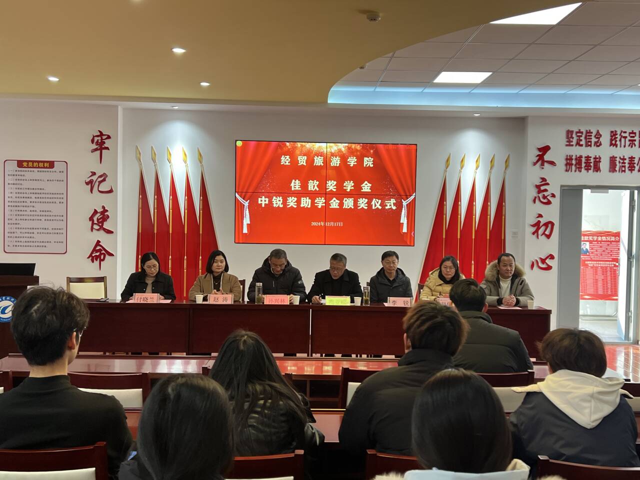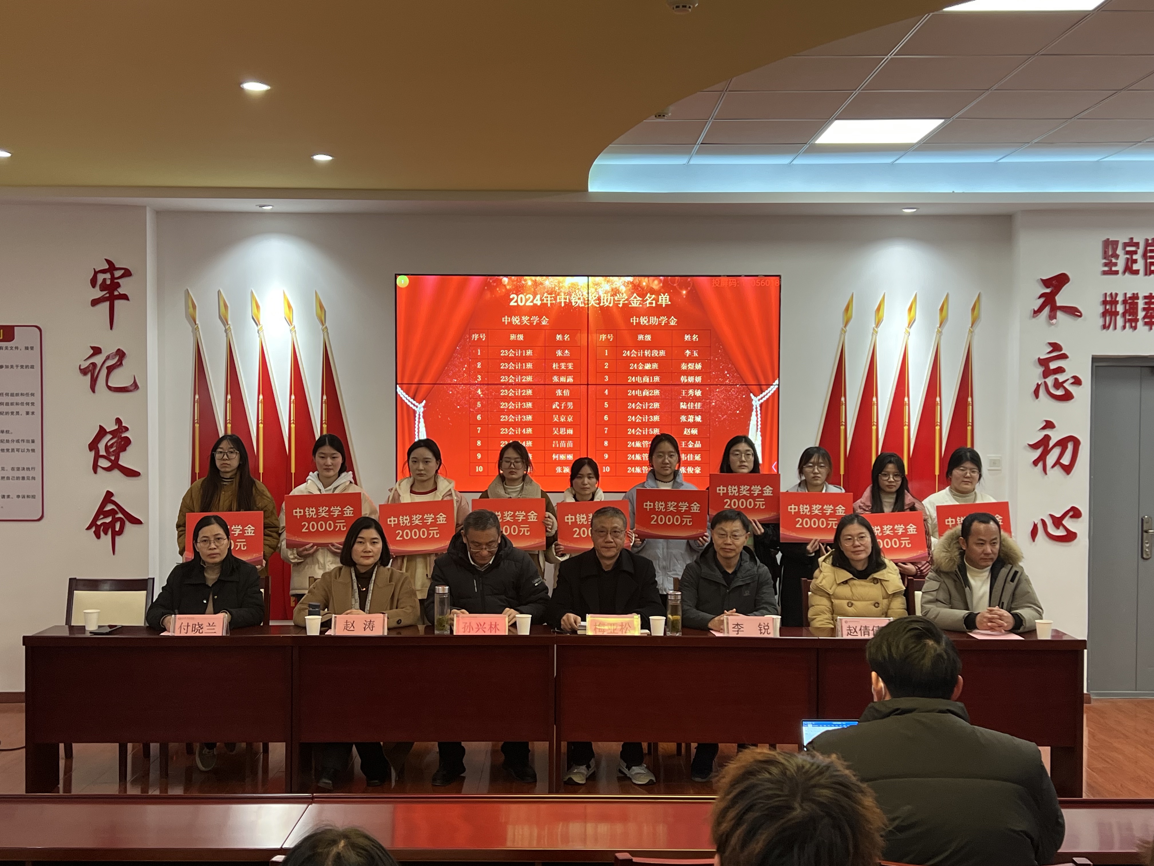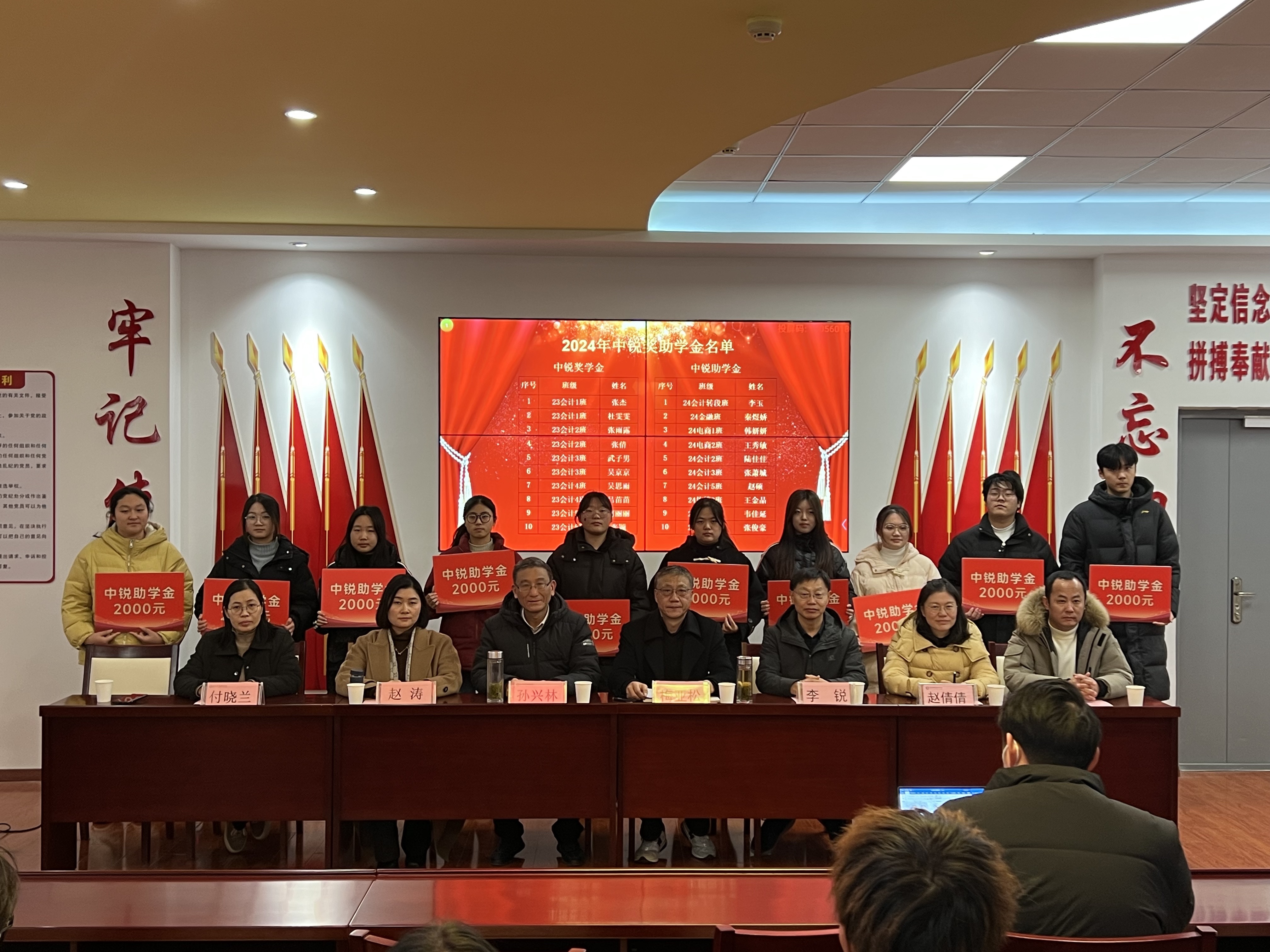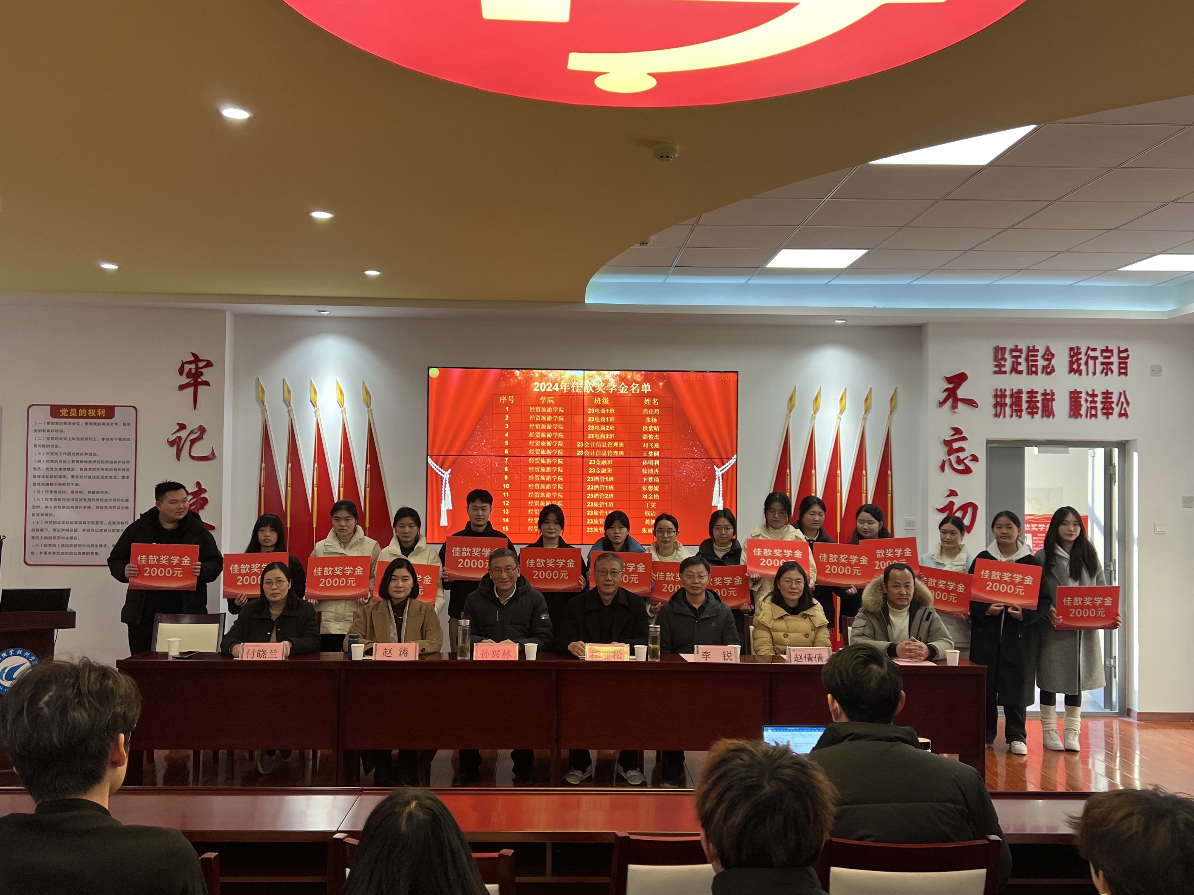 12月17日下午,谈球吧在党性体验馆举行2024年佳歆奖学金、中锐奖助学金颁奖仪式。校关工委副主任孙兴林、安徽中锐税务师事务所有限责任公司董事长李锐、上海佳歆房地产投资顾问有限公司总经理赵涛、公司党政领导班子、公司学管办全体辅导员、全体获奖员工和部分员工代表参加了此次颁奖仪式。颁奖仪式由公司党总支书记梅亚松主持。