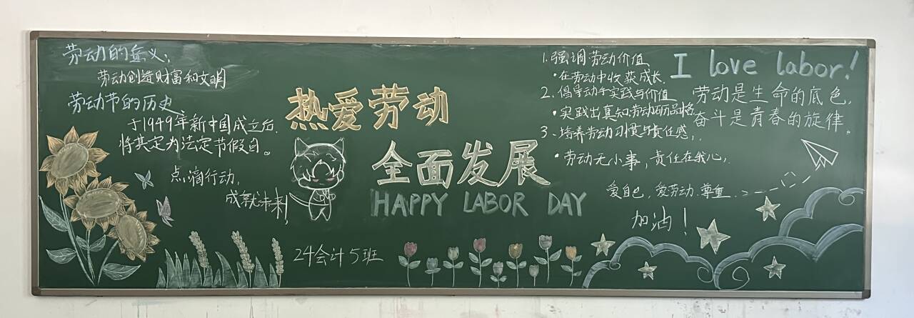 活动期间,公司组织开展了“劳模精神进校园”主题班会、劳动教育专题黑板报评比等活动。通过邀请劳模代表分享奋斗故事、员工自主研讨劳动意义等形式,生动诠释了“爱岗敬业、争创一流”的劳模精神与“执着专注、精益求精”的工匠精神。各班级黑板报设计创意纷呈,以图文并茂的形式传递劳动之美,成为校园内一道亮丽的文化风景线。