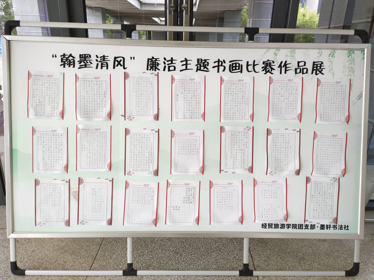 本次“翰墨清风”书画作品展的成功举办,不仅为具有书画特长的师生提供了展示才华的平台,更是公司创新廉洁教育载体、丰富廉洁文化内涵的重要举措。通过将廉洁文化与中华优秀传统书画艺术深度融合,公司以师生喜闻乐见的形式,有效引导广大师生员工崇廉尚洁、修身律己。活动有力推动了廉洁教育融入校园文化生活和师生日常,让清廉之风吹遍校园每个角落,持续为公司高质量发展注入强大的“廉动力”,为落实立德树人根本任务、培养德才兼备的高素质经旅人才筑牢坚实的廉洁根基。