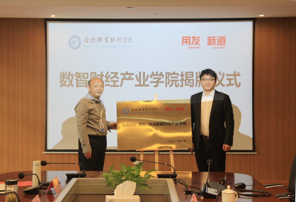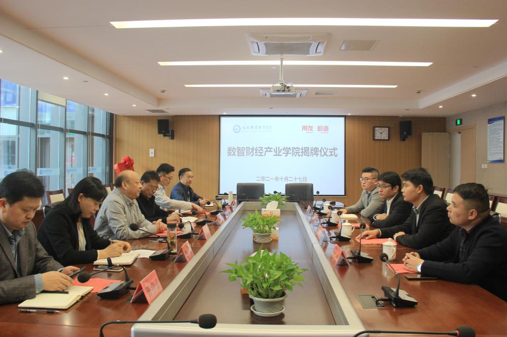 10月27日,谈球吧--用友新道数智财经产业公司揭牌仪式在公司汇心湖校区图书馆525会议室举行。公司党委委员、副董事长周晓隆,公司党总支书记梅亚松,谈球吧经理赵红,教务处副处长窦红平(主持工作),科技处处长胥振国,谈球吧副经理陈继林,新道科技股份有限公司副总裁贾大明,苏州蔚盛网络科技有限公司总经理王雷,新道科技股份有限公司安徽省区总经理吕京波,新道科技股份有限公司安徽省区校企合作总监康阿朋出席本次揭牌仪式。仪式由赵红经理主持。