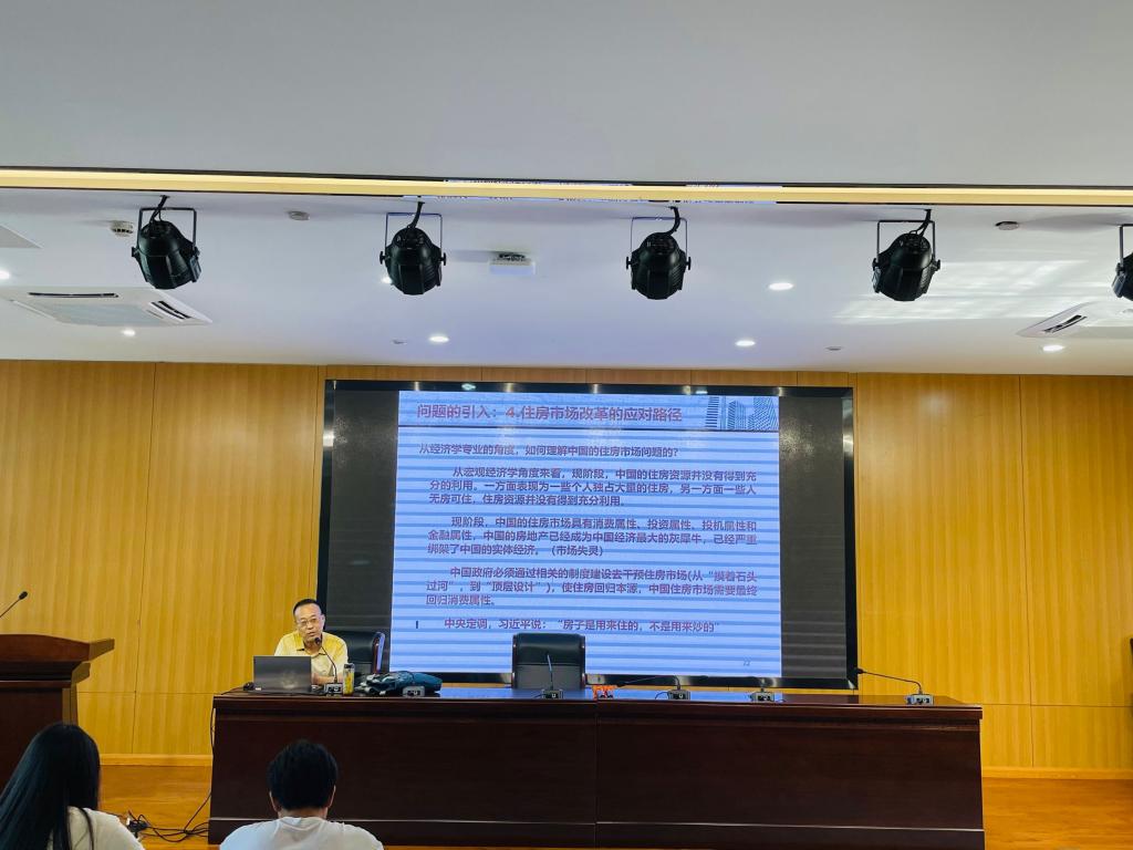 为向公司师生宣传介绍中国住房市场的发展历程与未来趋势。6月23日下午,谈球吧在汇心湖校区图书馆一楼学术报告厅精心组织了一场题为《住房市场要素解析》专题学术报告会,报告会由鲍勇教授主讲。金融教研室全体教师、19级、20级互联网金融专业部分员工听取了报告。报告会由谈球吧金融教研室主任任向英副教授主持。