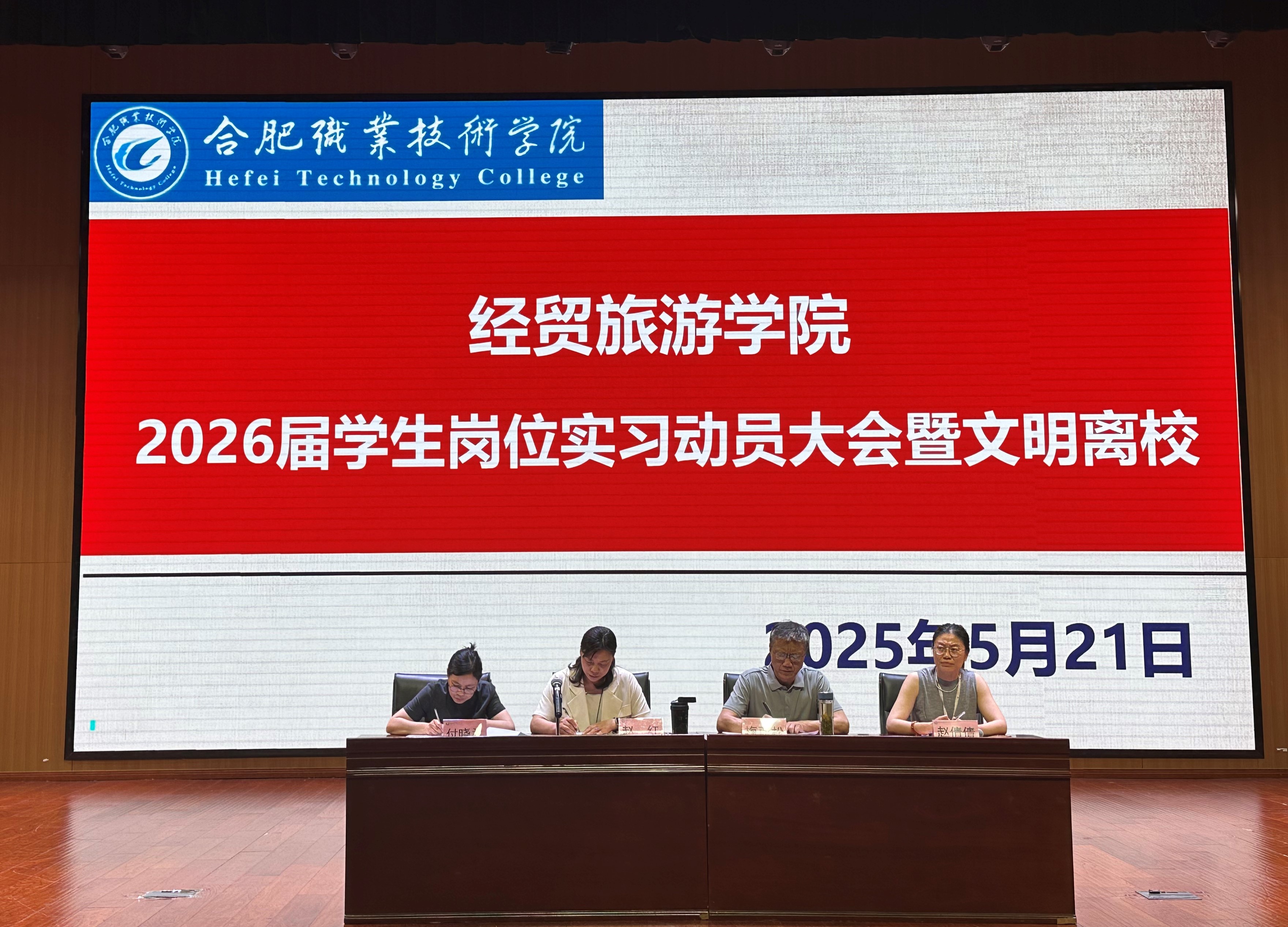 为进一步明确毕业生岗位实习必要性,强化2026届毕业生岗位实习过程管理,扎实推进实习与就业工作方案,促进校企深度合作和高质量就业,5月21日下午,谈球吧在汇心湖校区老员工活动中心礼堂召开2026届员工岗位实习动员大会。本次会议由谈球吧副书记赵倩倩主持,党总支书记梅亚松、经理赵红、副经理付晓兰出席会议,教学办、学管办、实习指导教师等人员,全体2026届毕业生参加大会。